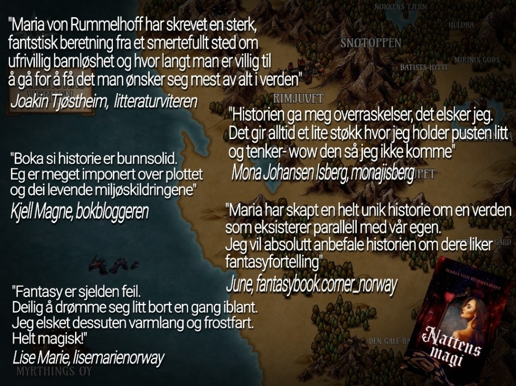 Maria Von Rummelhoff har vært beryktet for sin gode fantasi og innlevelse, men begynte først og fremst å skrive for lettere å takle den tøffe tiden hun gjennomgikk med ufrivillig barnløshet og uheldige prøverørsbehandligner. Handlingen som utspilte seg under fingertuppene, lot henne unnslippe hverdagen og den fantastiske verdenen Grimrokk avslørte seg. Resultatet ble debutboken NATTENS MAGI.